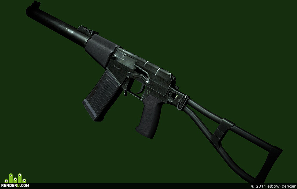Приклад — трубчатый, складной влево, металлический, достаточно прочный для использования в ближнем бою, в сложенном состоянии не препятствует стрельбе. Шершавая поверхность пистолетной рукоятки позволяет прочно удерживать её, чему также способствует и сама форма рукоятки. Пистолетная рукоятка, цевьё и двухрядные магазины — пластиковые. Встроенный глушитель играет также роль пламегасителя.