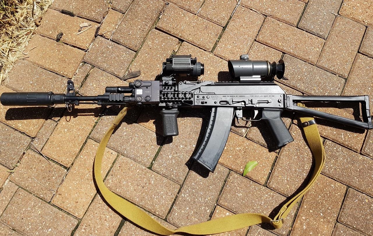 - цевье с накладкой над газовой трубкой, крышка ствольной коробки Зенитко, так же двух диапазонный модуль ЛЦУ той же компании;