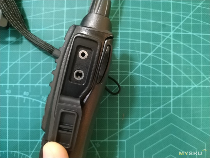 По правому борту стандартный двухпиновый разъем для гарнитуры типа Kenwood