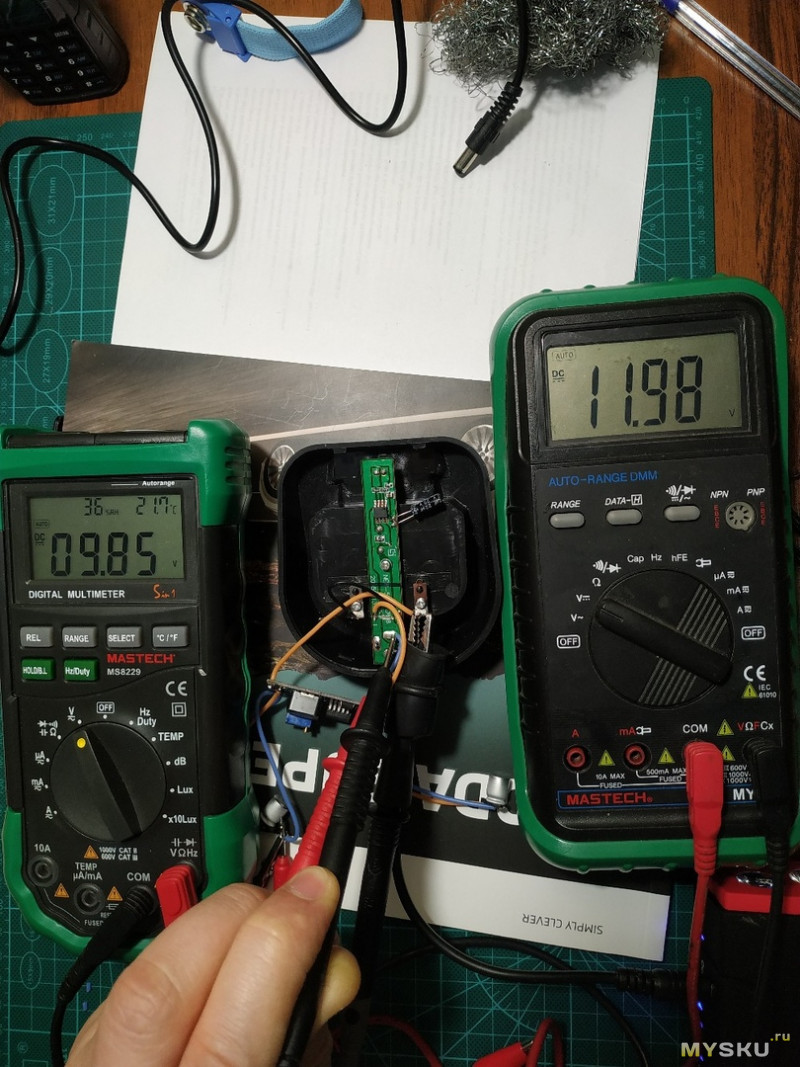 на входе 16.2 вольт, на выходе 9.87 вольта