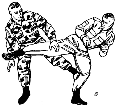 При этом с одной стороны для поддержания общей подвижности в рукопашном бою, а с другой для более четкого включения в удар мышц ног, подшаг и сгибание ног в коленях выполняются непосредственно в момент нанесения удара.
