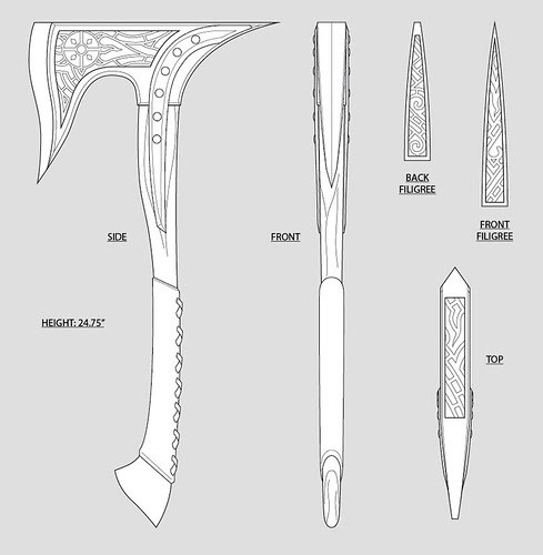 Лезвия топоров обладают многими формами, которые приблизительно напоминают самые разнообразные топоры разных эпох или наконечники в копьях, лежащие перпендикулярно древкам. Обухи также обладают несколькими формами, напоминающими прочие топоры, типа клевцов. Некоторые обухи были в виде молоточков или чеканов со штырями, квадратных и круглых сечений.
