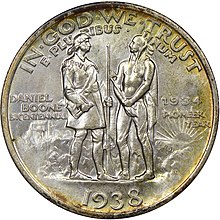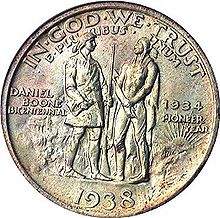 Памятная монета (50 центов), выпущенная в честь двухсотлетия со дня рождения Дэниэля Буна. 1934—1938 гг.