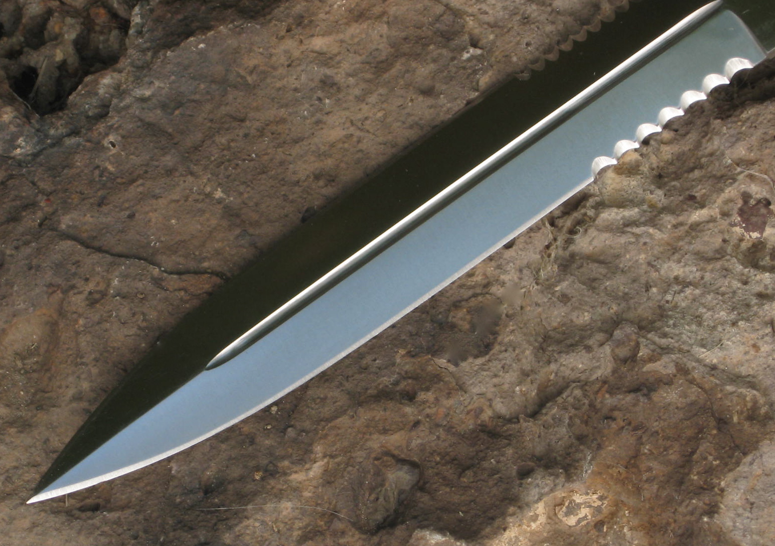 Кромка: обоюдоострая с зубцами. Система переноски: оболочка из кайдекса (более ранние версии имеют оболочки из диэлектрика или нейлона). Материал ручки: Кратон Тип ножа: фиксированное лезвие.
