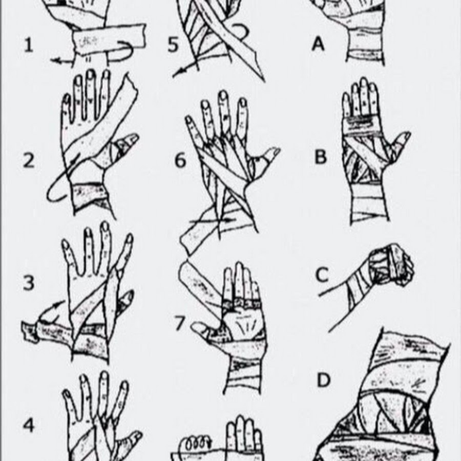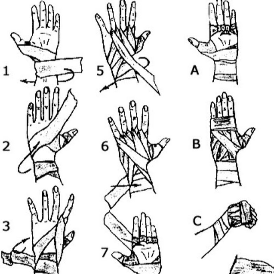 Существуют два основных варианта заматывания бинтов — классический способ и «восьмёркой». Первый более простой и подойдёт всем тем, кто впервые взял в руки бинт. Далее пошаговая инструкция по правильной бинтовке рук: