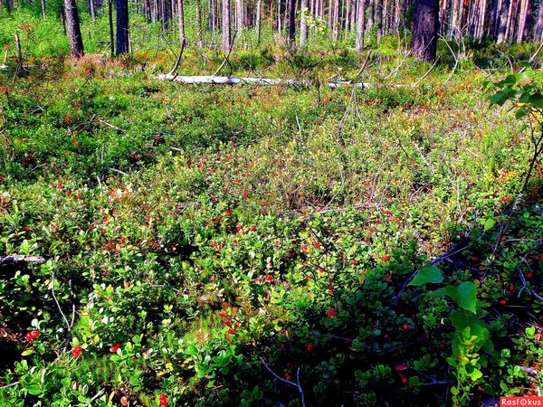 В нашем регионе на болотах растёт клюква и голубика.