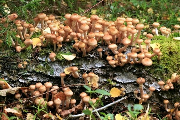 Их можно найти в густых зарослях травы рядом с поваленными деревьями и старыми пнями. В лесу опята растут большими группами, срезать грибы можно вплоть до устойчивых заморозков.