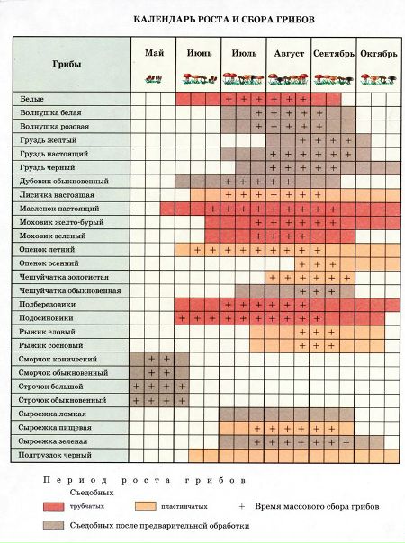 Теперь, благодаря календарю грибника, вы знаете, какие грибы и когда собирать в Московской и Ленинградской области. Отличить съедобные и распознать ядовитые грибы вам поможет краткий определитель грибов. Удачной тихой охоты. Ранее на тему Грибы: | ||||||||||||||||||