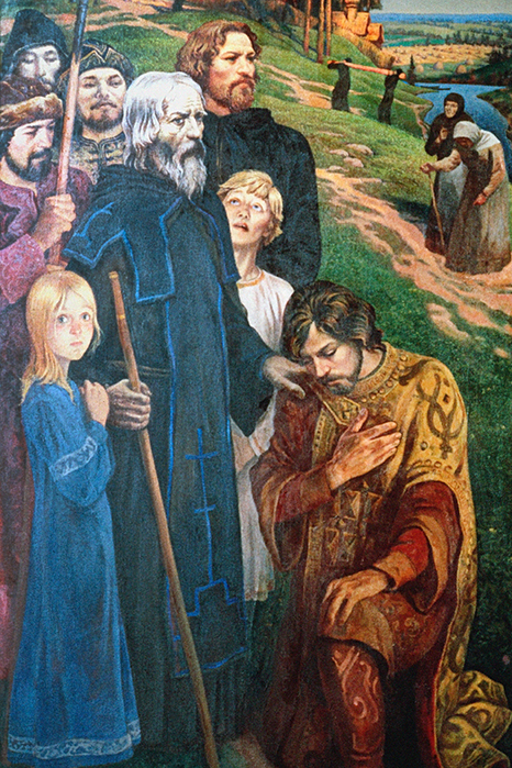 С каждой новой работой образ святого становился все выразительнее, монументальнее и глубже. Не мог Нестеров обойти вниманием и встречу князя Дмитрия с преподобным Сергием.