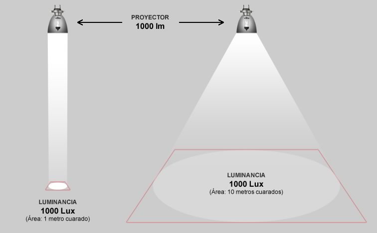 Например, если лампа, освещающая территорию размером в 1 м 2, излучает 50 люмен, то освещенность этого места составляет 50 люксов (50 лм / 1 м 2 = 50 лк).