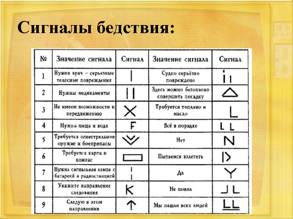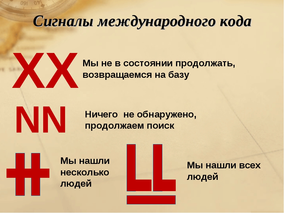 Подаваемый сигнал должен нести обнаружившим вас людям какую-то информацию о вашем бедствии.