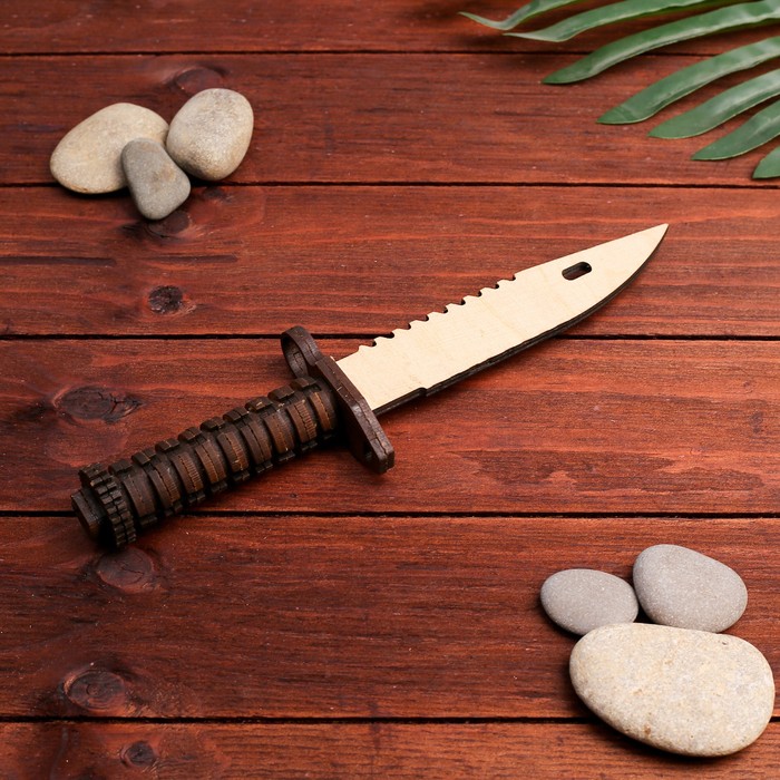 Данное изделие является репликой американского штык-ножа М9. И представляет собой мощный туристический нож. Клинок длиной 165 мм и толщиной обуха 6,1 мм выполнен из российской нержавеющей стали 40х13, что обеспечивает его неприхотливость в походных условиях. Нож не является холодным оружием из-за толщины клинка. И может использоваться в качестве походного либо коллекционного.