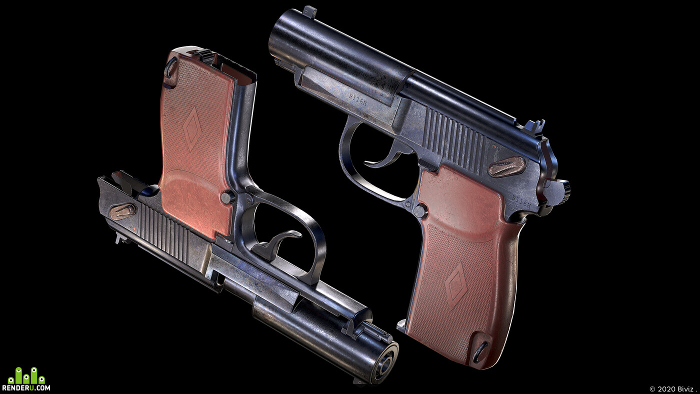 Пистолет использует штатные магазины от ПМ на 8 патронов.Пистолет деактивирован, прилагаются Российские разрешительные документы.