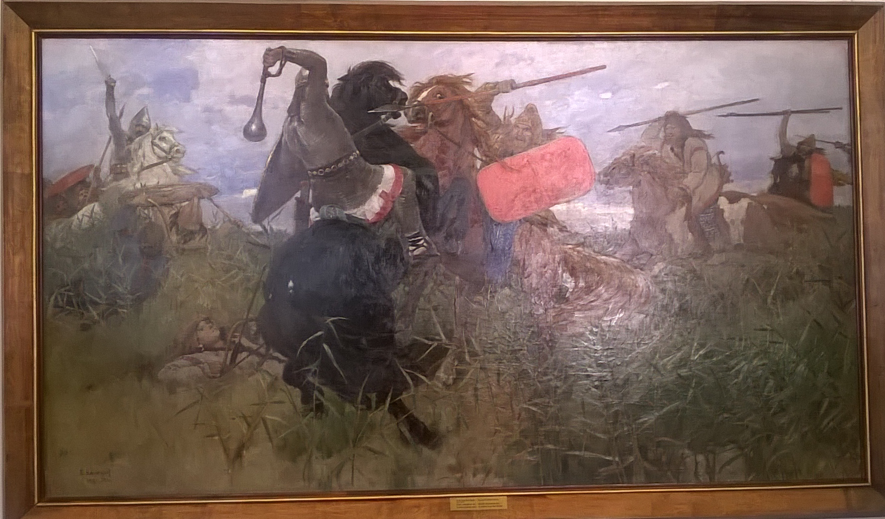 На мой взгляд, эта картина выделяется на фоне остальных целым рядом бесспорных достоинств. На холсте художник смог передать ту дикую, необузданную энергию борьбы между Русью и степью, между слабеющей мощью отдалённых потомков Чингисхана и новым, восходящим к вершинам цивилизации народом, который, в жестоких схватках отстоит своё право на существование.