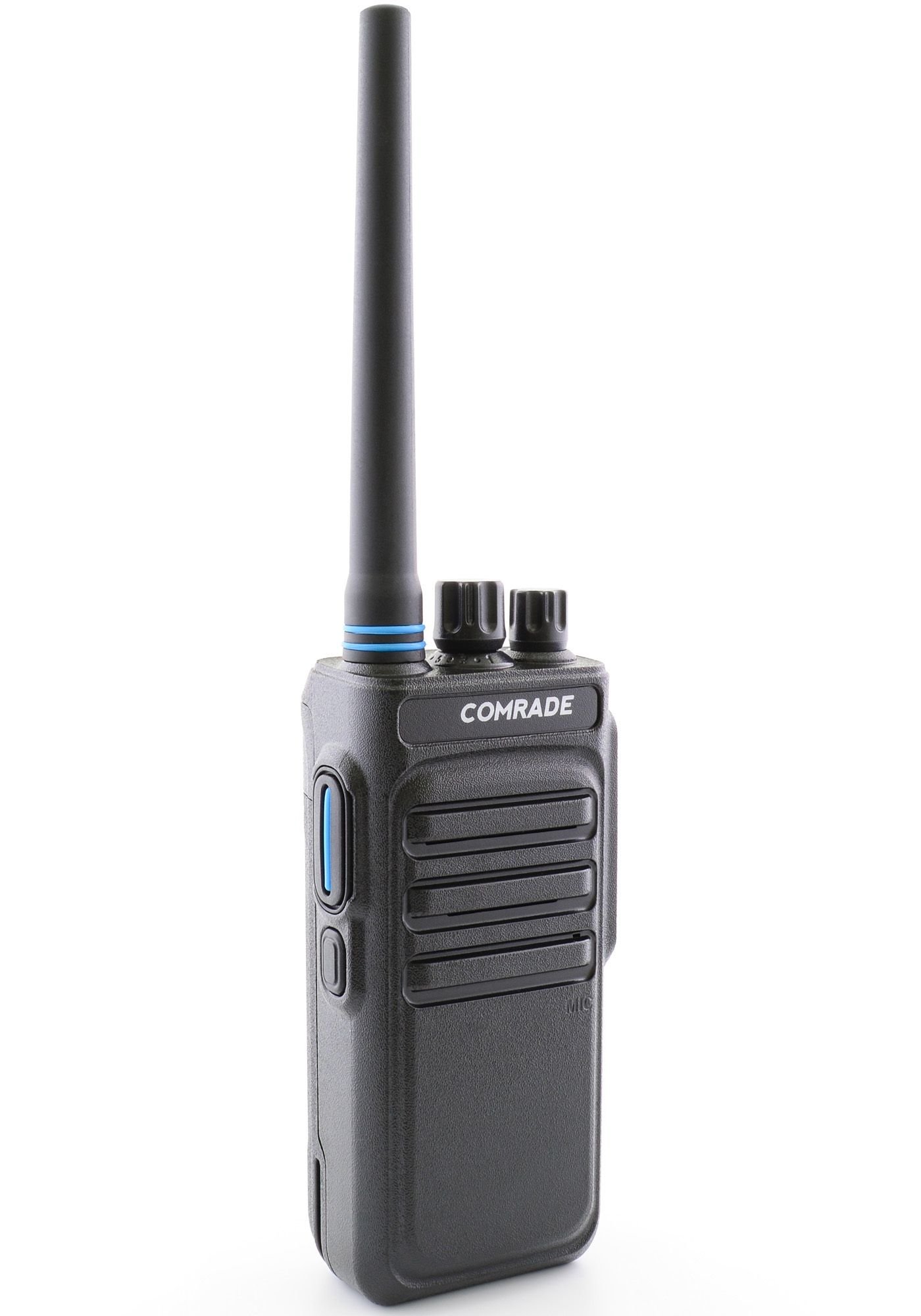 Рация размером 100 миллиметров в высоту и 52 в ширину, весит всего 140 граммов — не будет обузой спортсмену. Мощности в 2 Вт хватит для передачи сигнала на трассе с пересеченной местностью. Комрад сделан из противоударного пластика. Он не боится падений, пыли, снега и брызг воды.