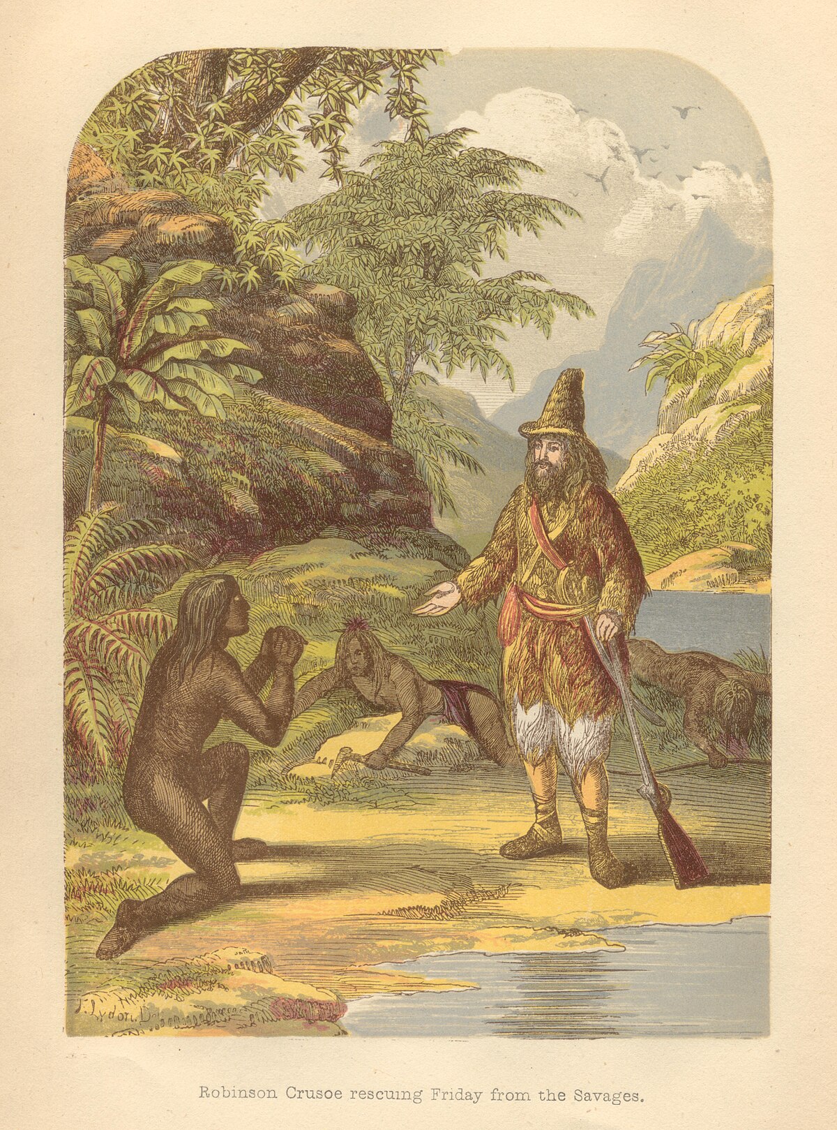 Исследуя остров, Крузо обнаружил следы каннибалов-дикарей, которые путешествуют по суше и устраивают пиршества, где главное блюдо – человеческое мясо. Однажды Робинзон спасает пленного дикаря, который должен был попасть к людоедам на стол. Крузо обучает нового знакомого английскому языку и называет его Пятницей, так как в этот день недели состоялось их судьбоносное знакомство.