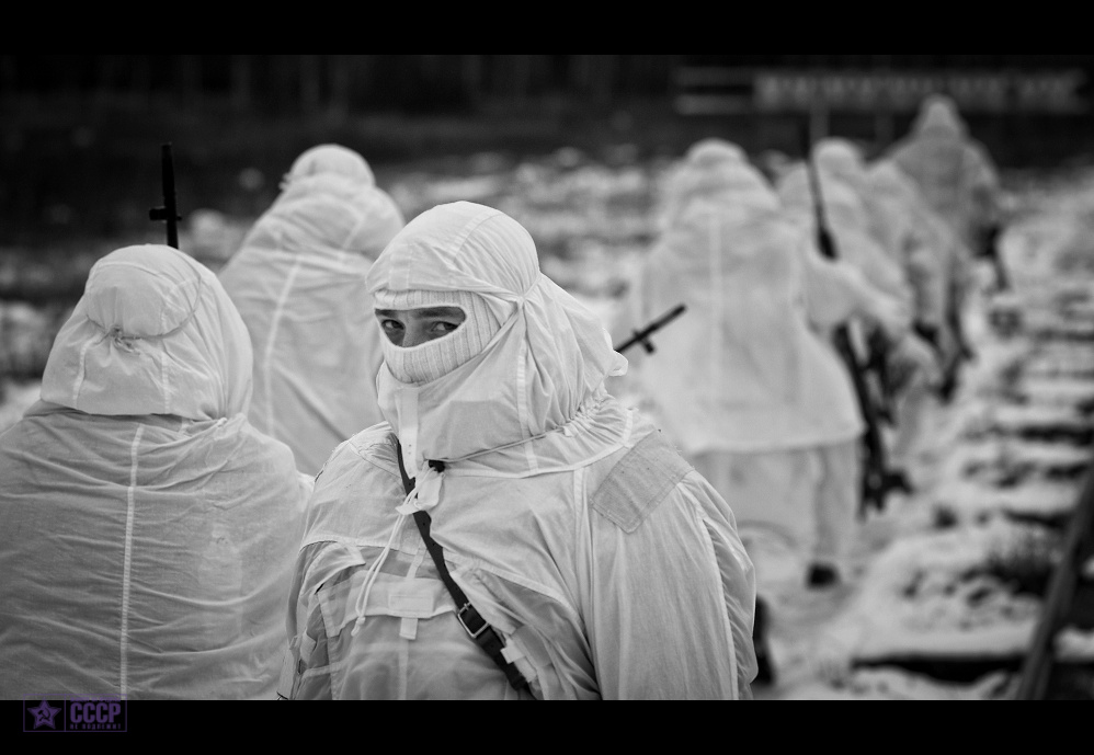 Первый из снайперов выбрал место для будущей «лёжки». Ямка, достаточная для того, чтобы скрыть лежащего человека, была застелена теплоизолирующей «пенкой» и плащ-палаткой. Боец ложится на живот и гнездится удобным ему образом, а его товарищ покрывает лежащего нехитрым матом. Речь, конечно, о плетёной из «местных» веток, прутьев и комьев снега плоской конструкции. Примерно над головой лежащего снайпера тем же методом устраивается кочка.