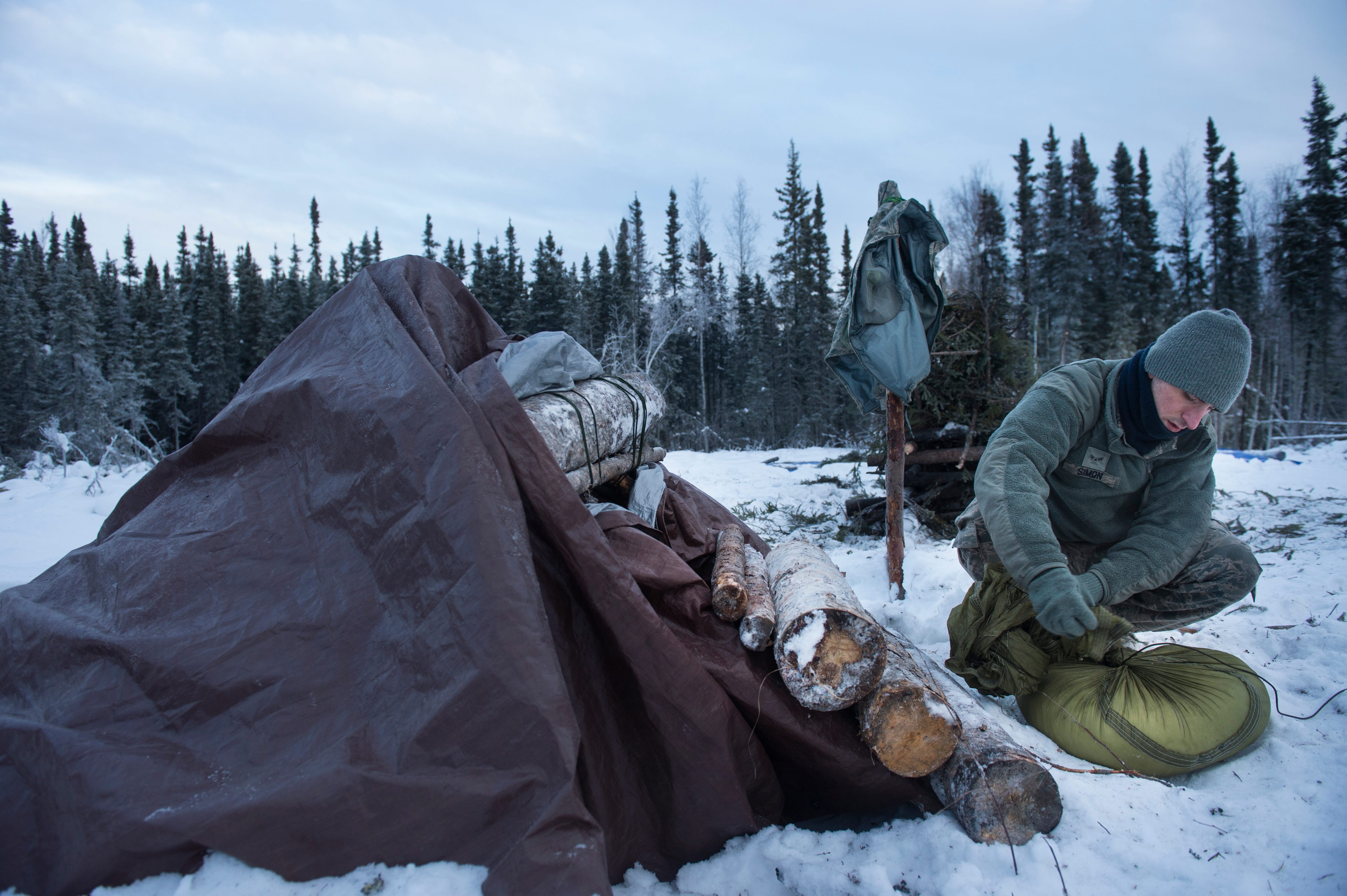 Далее вам нужно найти место для укрытие. Мы настоятельно рекомендуем вам носить с собой хотя бы один холст, так как он имеет многократное использование, очень практичен и легок. Это может спасти вашу жизнь, защитить себя от проливного дождя или сильного снегопада. Без брезента или укрытия вы не сможете долгое время выживать, полностью подвергаясь воздействию стихии. Научитесь строить укрытия с помощью брезента. Потренируйтесь перед походом в лес, чтобы подготовиться.