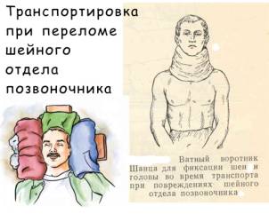 В случае перелома шейного отдела позвоночника, транспортировку осуществляют