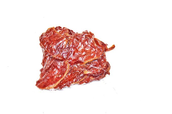 Сушеное мясо нельзя назвать деликатесом, обычно его используют для быстрого восстановления сил, когда нет возможности что-то приготовить, или в качестве добавки к другим блюдам. Зато оно может храниться бесконечно долго. Кроме того, как и сублимированное мясо, оно очень легкое, занимает мало места, что делает его оптимальным вариантом еды для туристов.