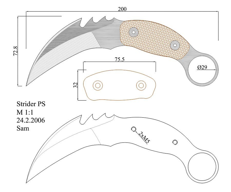 Чертеж ножа керамбит из кс го выглядит следующим образом: