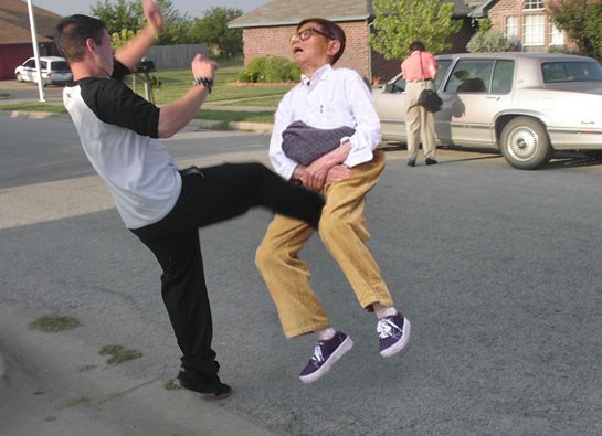 Также была история, которую я прочитал в местной газете, где 18-летний мужчина скандалил ртом с 25-летней женщиной, пока она не ударила его в пах.Он обратился в больницу с жалобами на боли.