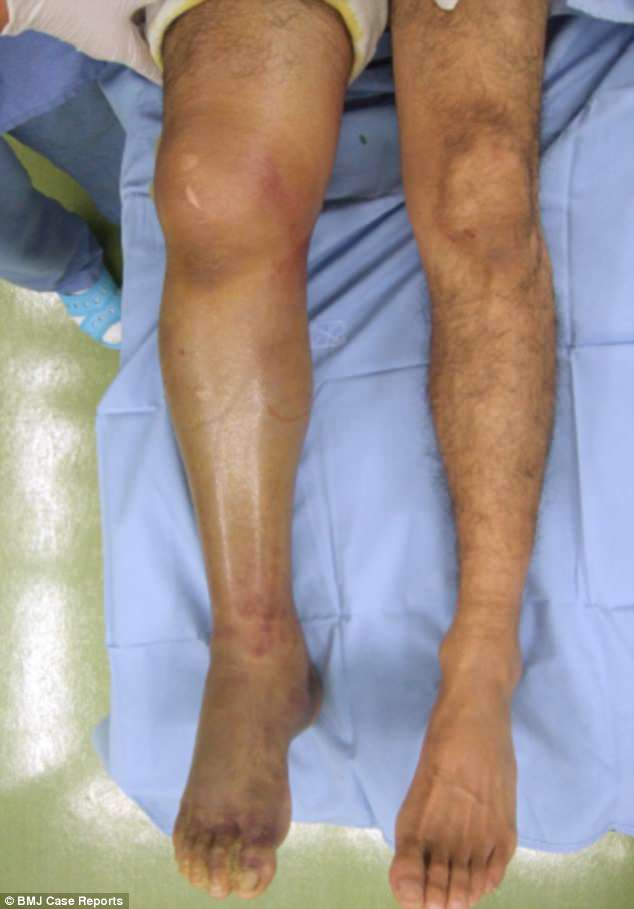 В июле 2008 года 42-летний мужчина, не названный по имени, обратился в больницу с жалобами на сильную боль и опухоль в ногах.