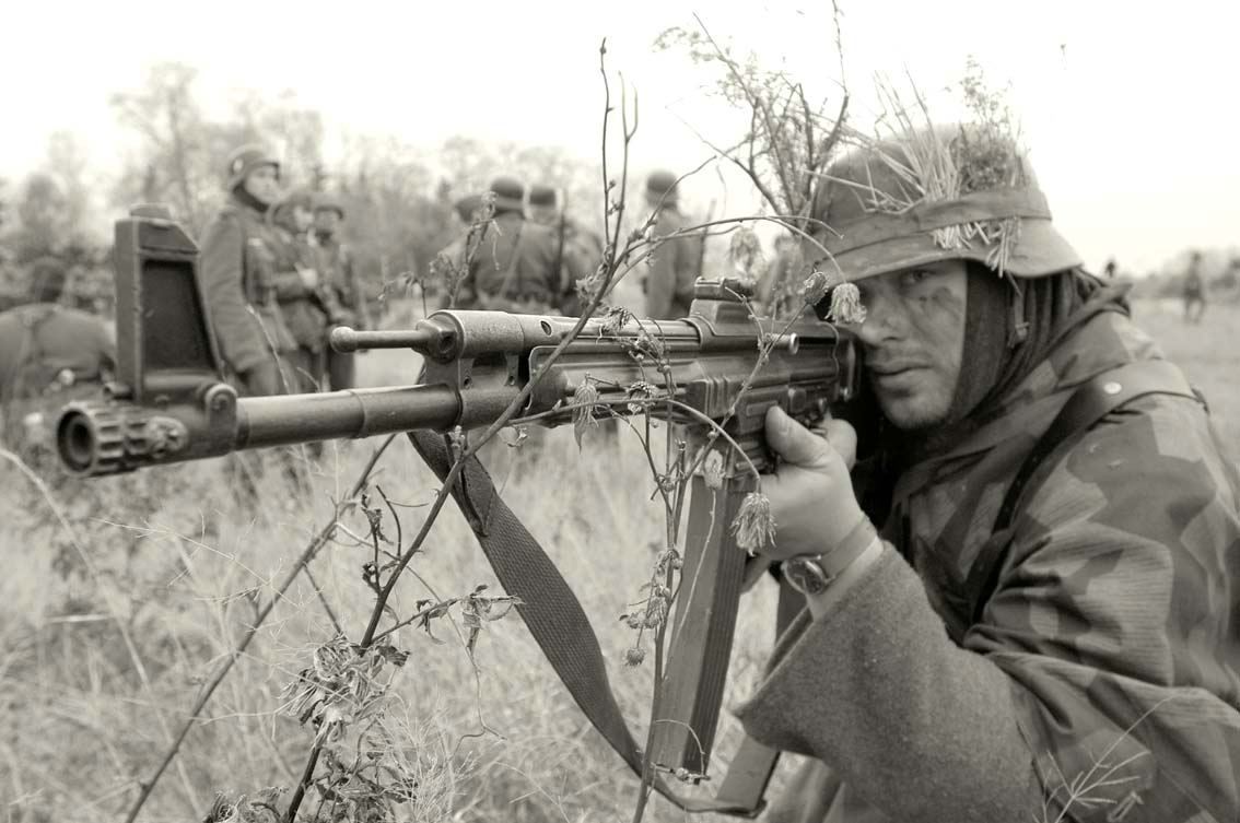 Штурмовые винтовки, на фронтах встречались крайне редко и весьма небольших количествах (применяли их в основном подразделения СС). Массово, sturmgewehr — StG 44 немцы применяли на конечном этапе ВОВ. Поэтому данные автоматы хоть и в заметной мере внесли значительный вклад в развитии вооружения пехоты, но переломной, решающей роли в сдерживании массированного натиска союзнических армий никаким образом не оказали.Своими боевыми качествами от абсолютно всех пистолетов-пулемётов Великой Отечественной, Штурмгевер 44 заметно отличается большей дистанцией прицельного огня, что обусловлено за счёт применения специального промежуточного патрона, с характеристиками находящимися между данными патронов для пистолетов-пулеметов и пулеметов. Это была золотая середина боеприпаса для стрельбы пехотного оружия, бессовестно скопированного и присвоенного советским Калашниковым.