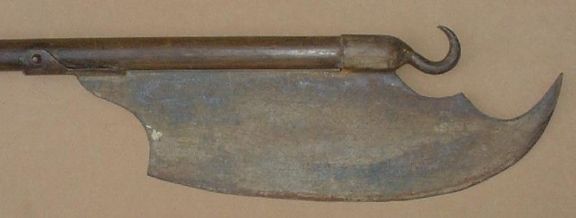 Именно для этой цели многие секиры и алебарды снабжались крюками — чтобы стаскивать вниз закованных в броню конников.