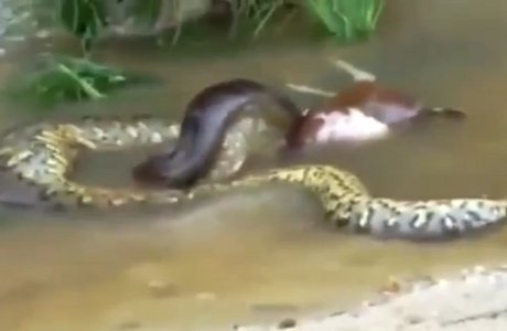 Анаконда ест. Благодаря сложному устройству челюстей и глотки, оснащенныхПосмотрите на ютуб захват анаконды то ещё зрелище!Анаконда – это не ядовитая змея, и для нее характерен способ охоты, свойственный всем удавам: змея.